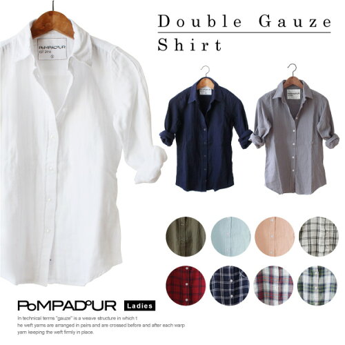 【ネコポス可:1枚迄】Pompadour ポンパドール コットン100% Wガーゼ シャツ[PD005]■